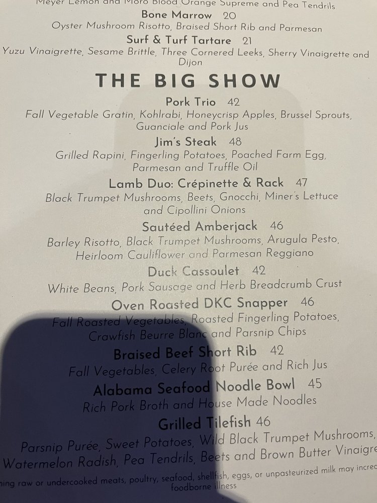 - Entrees feature delightful options such as the Simple Grilled Fish paired with Chowder and root vegetables.